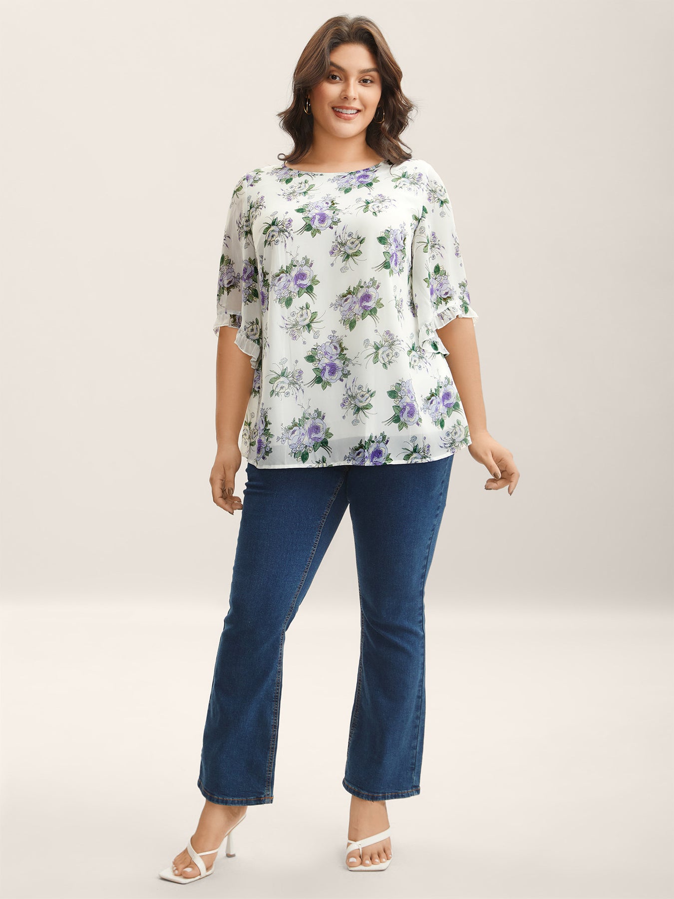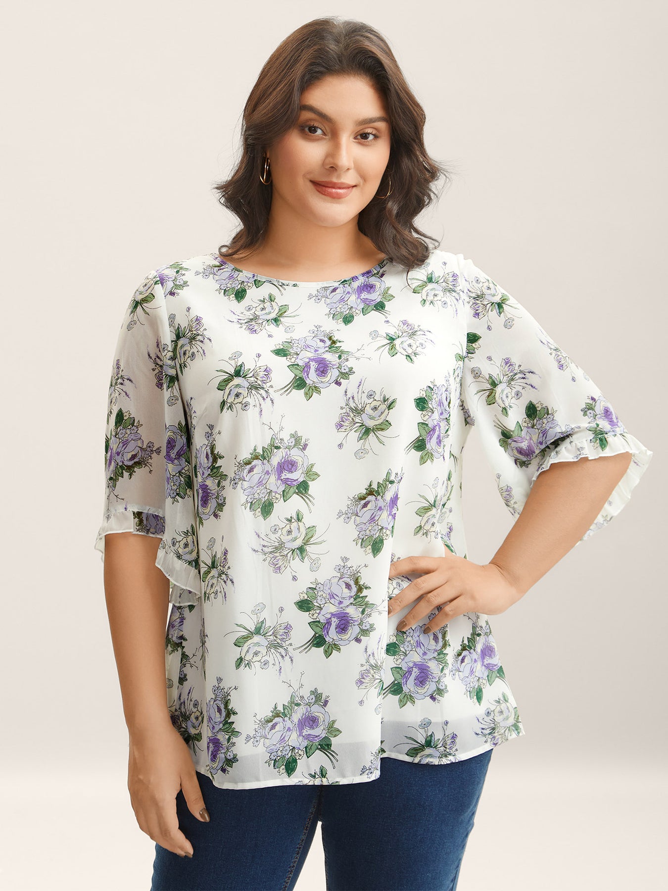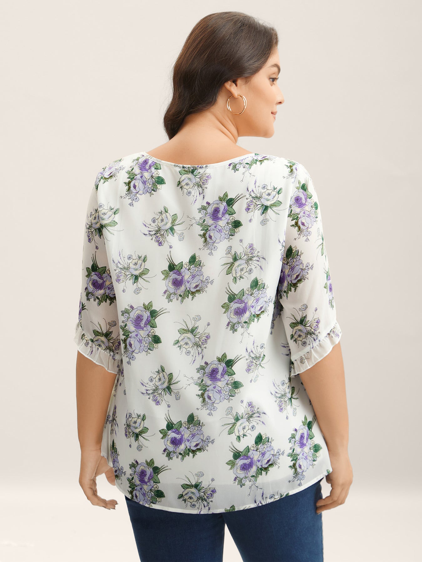 Chiffon Floral Ruffled Edges Shirt