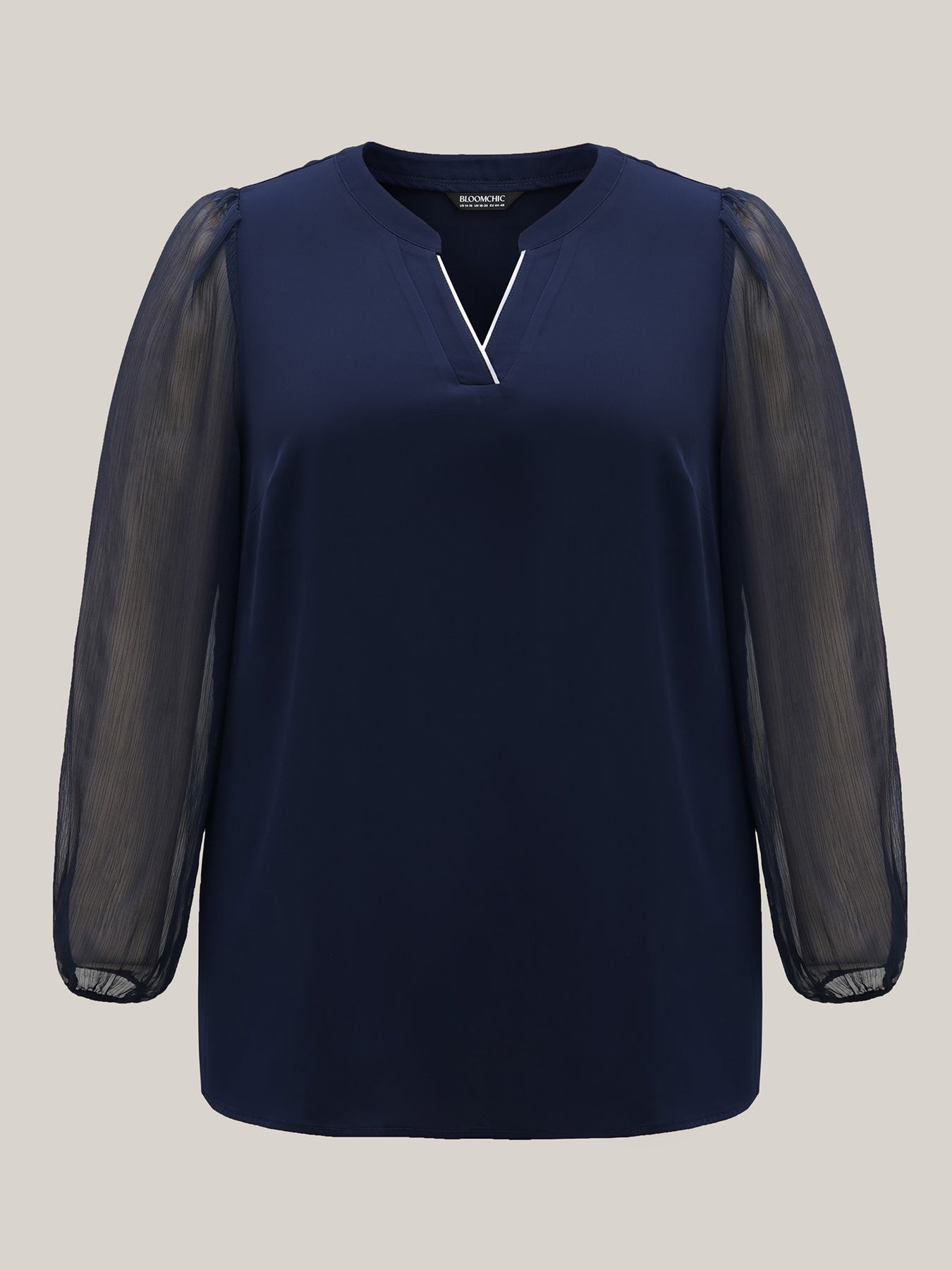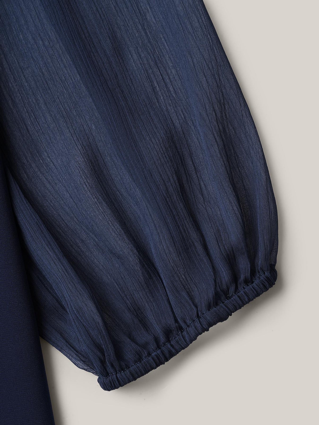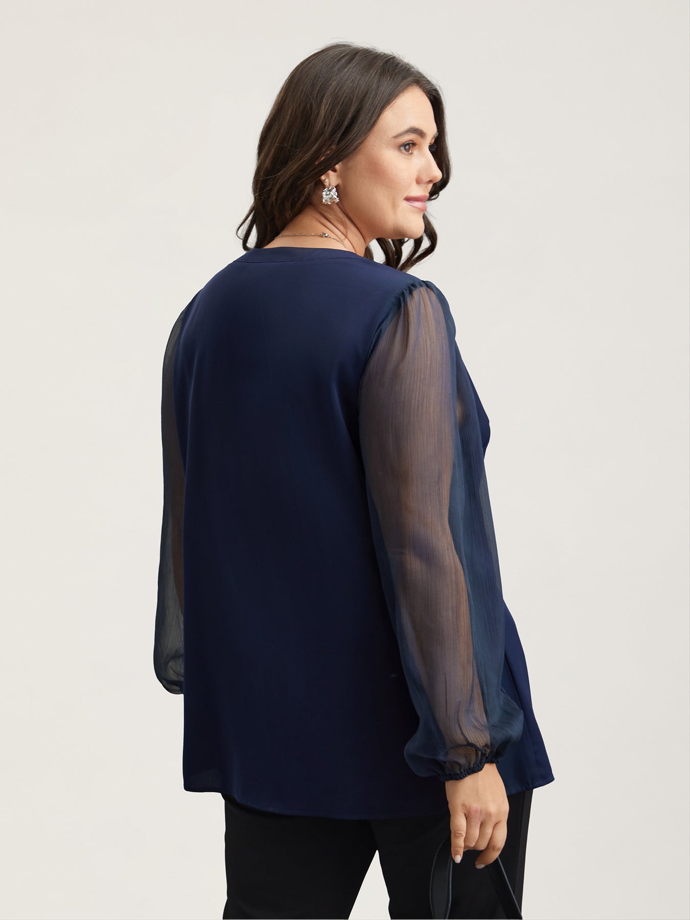 Mixed Fabric Sheer Puff Sleeve Shirt