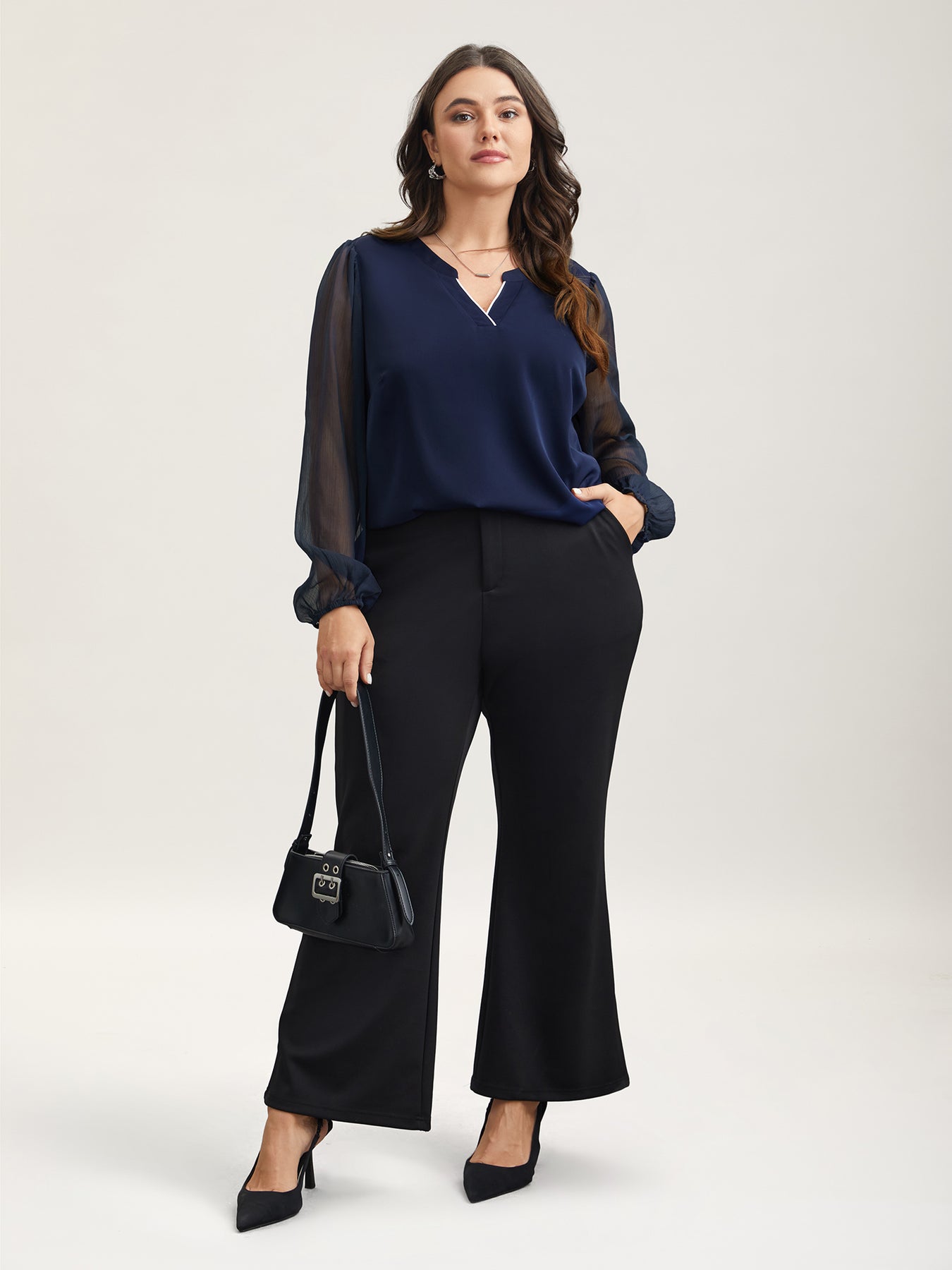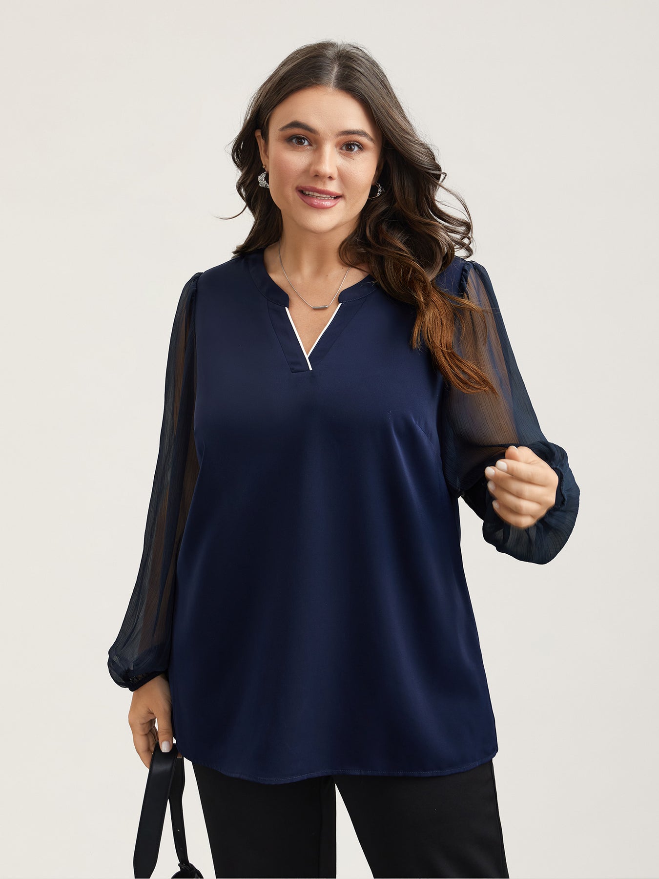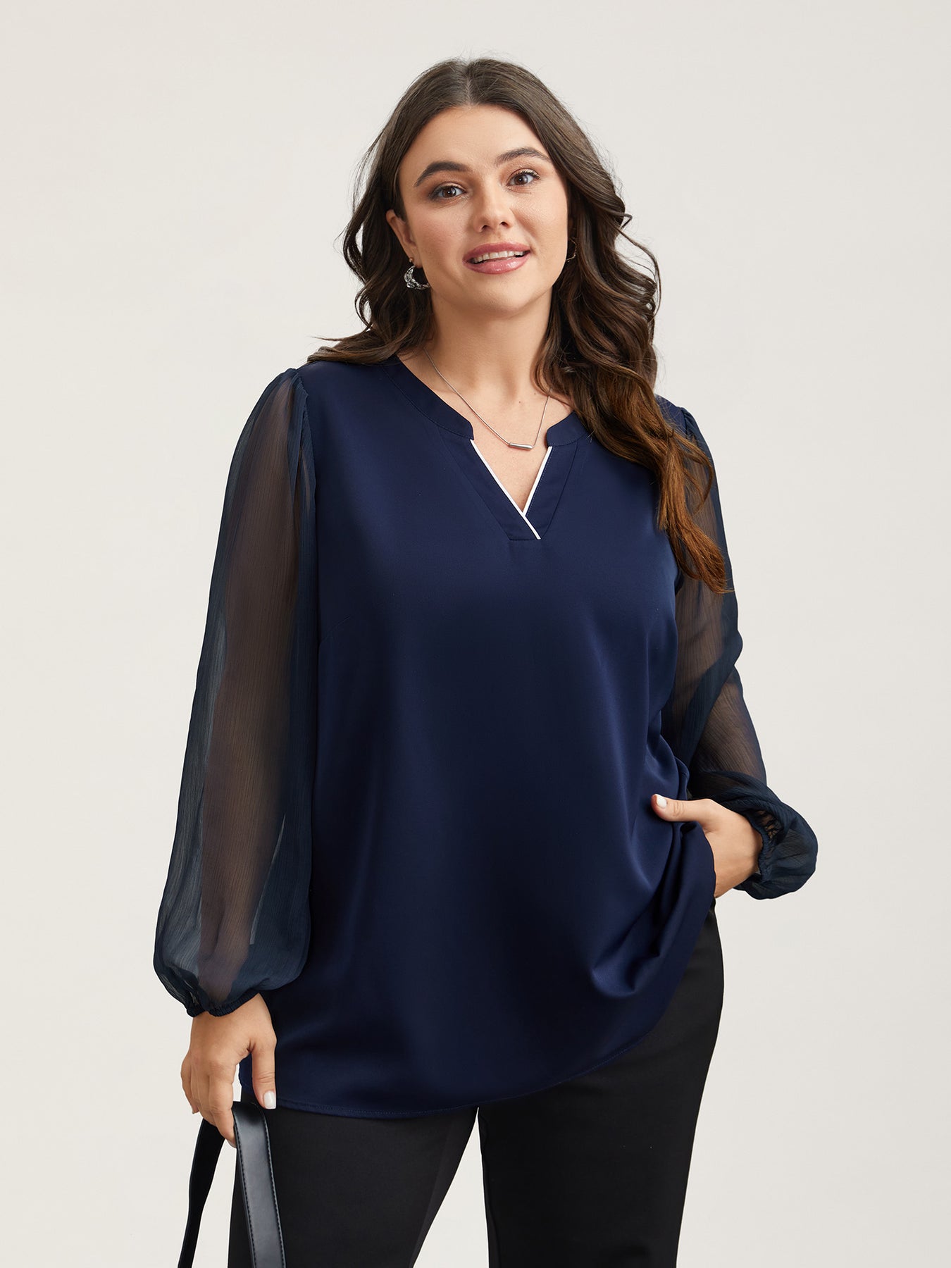 Mixed Fabric Sheer Puff Sleeve Shirt