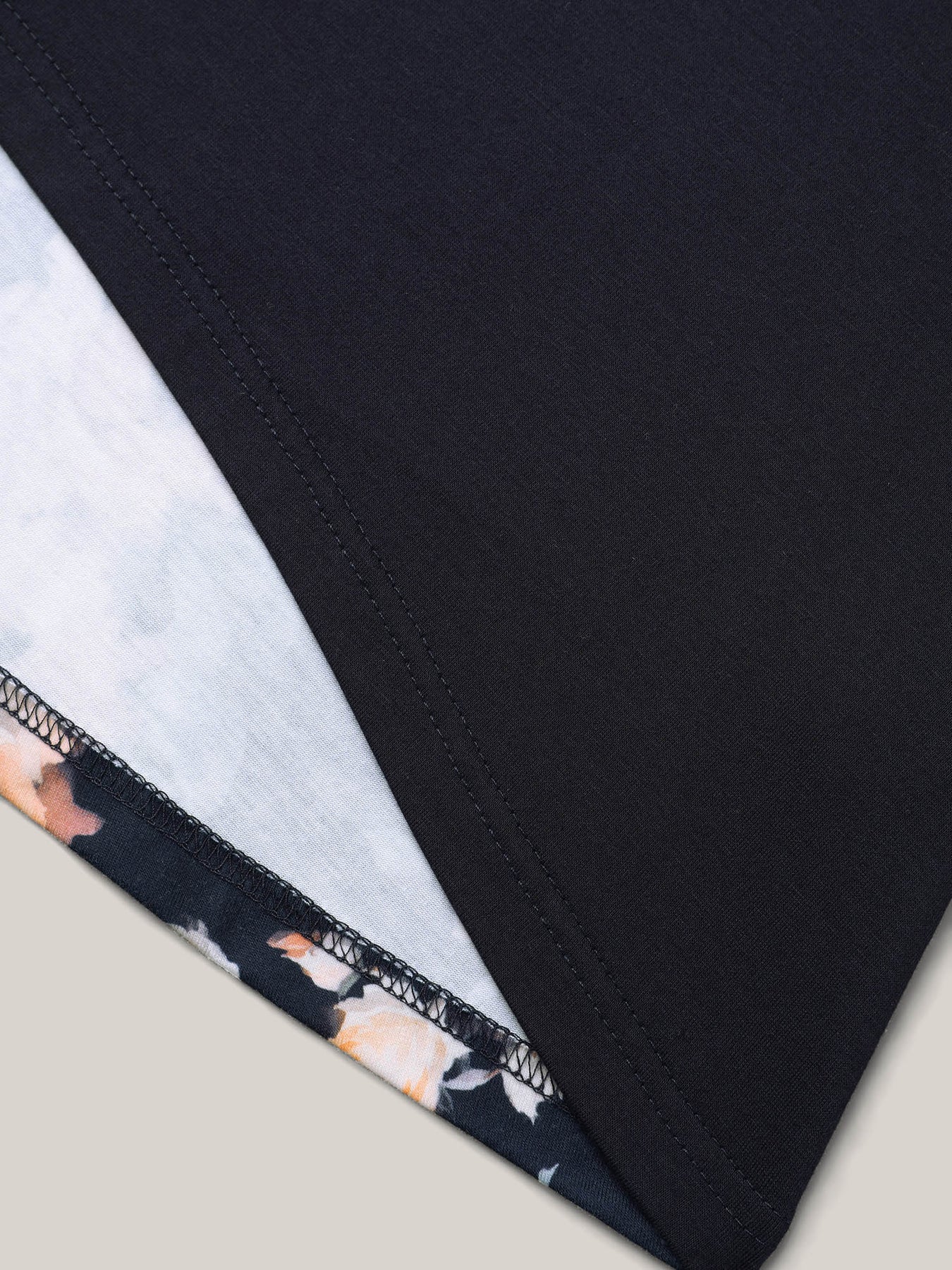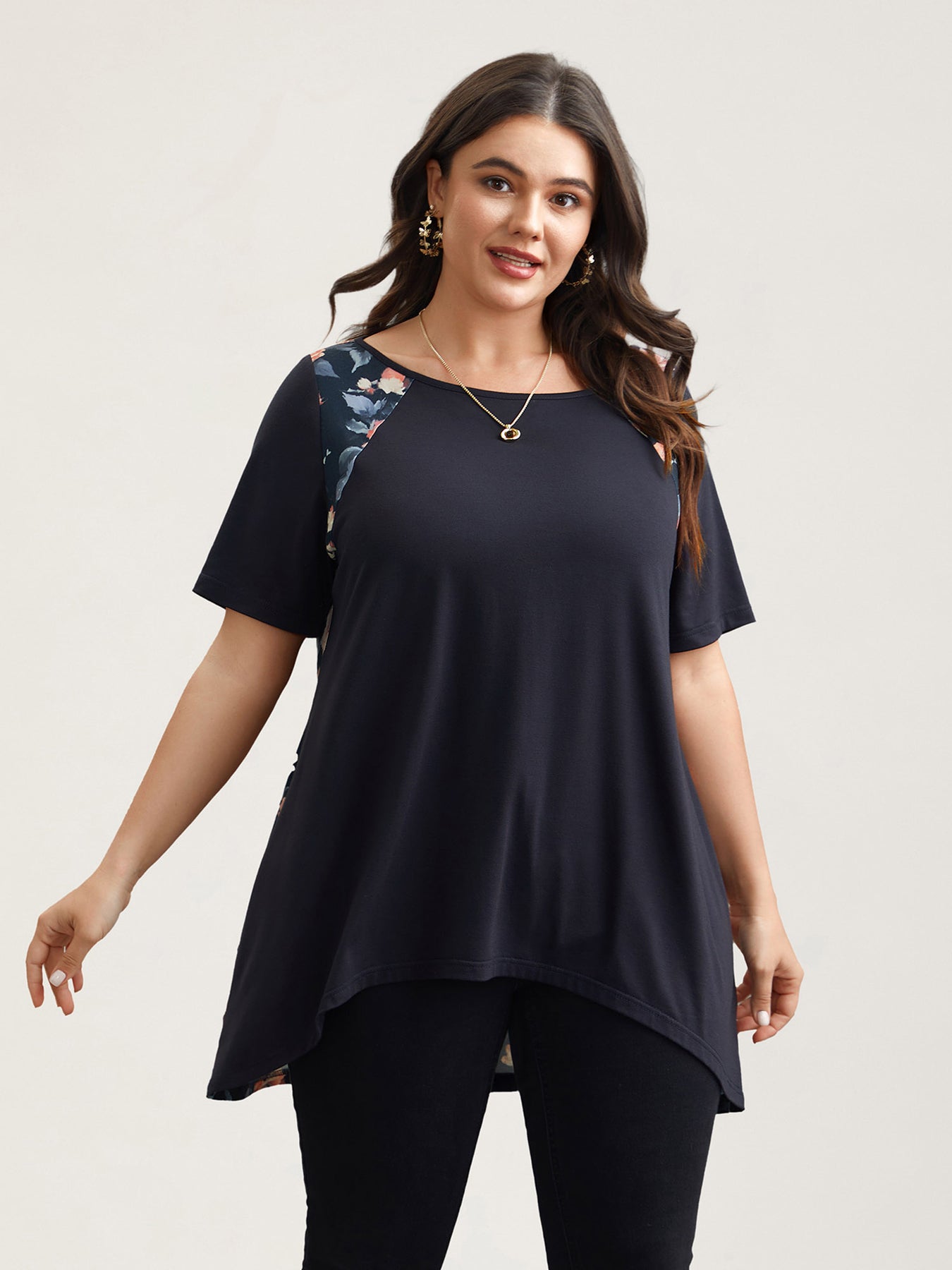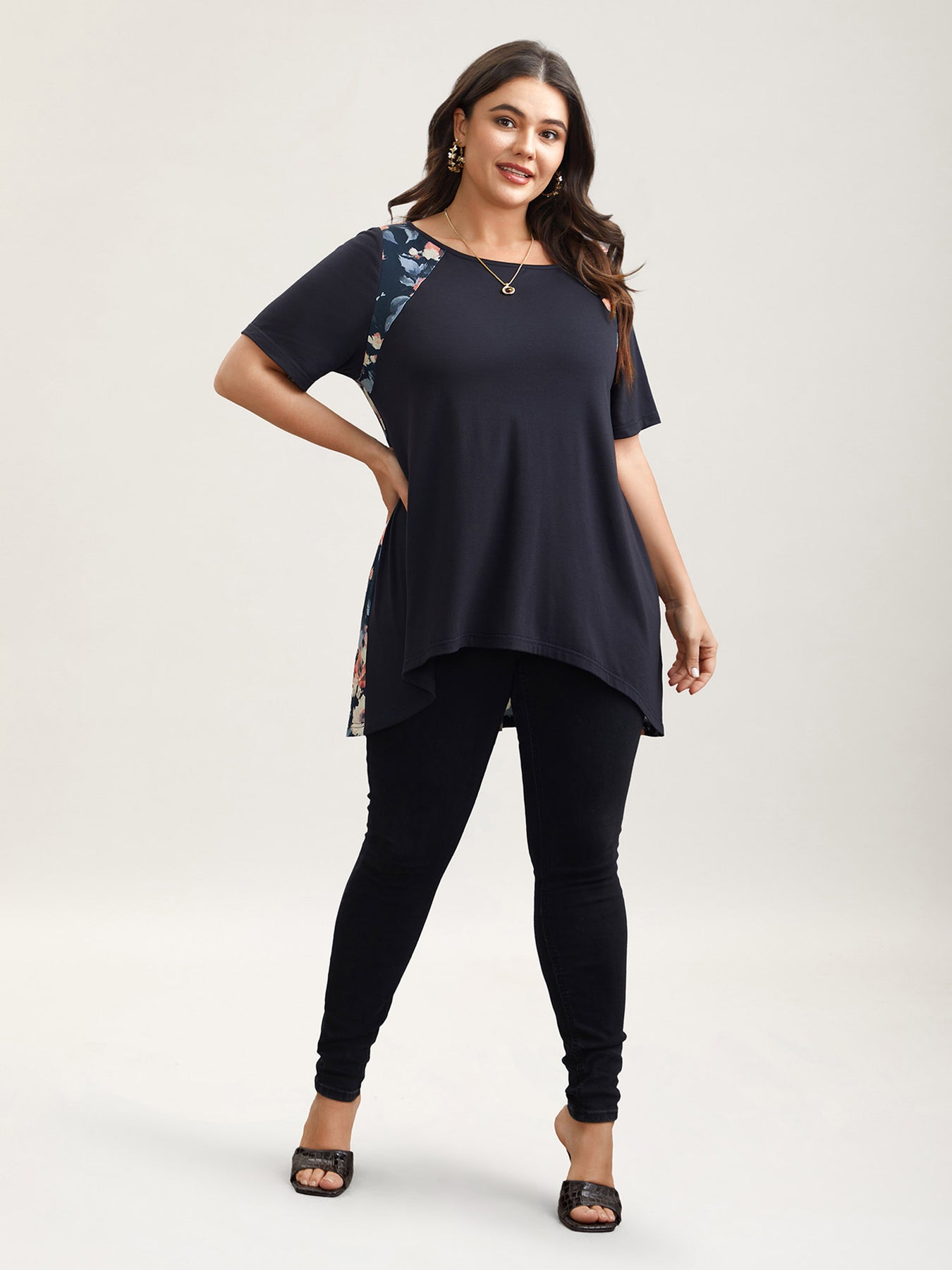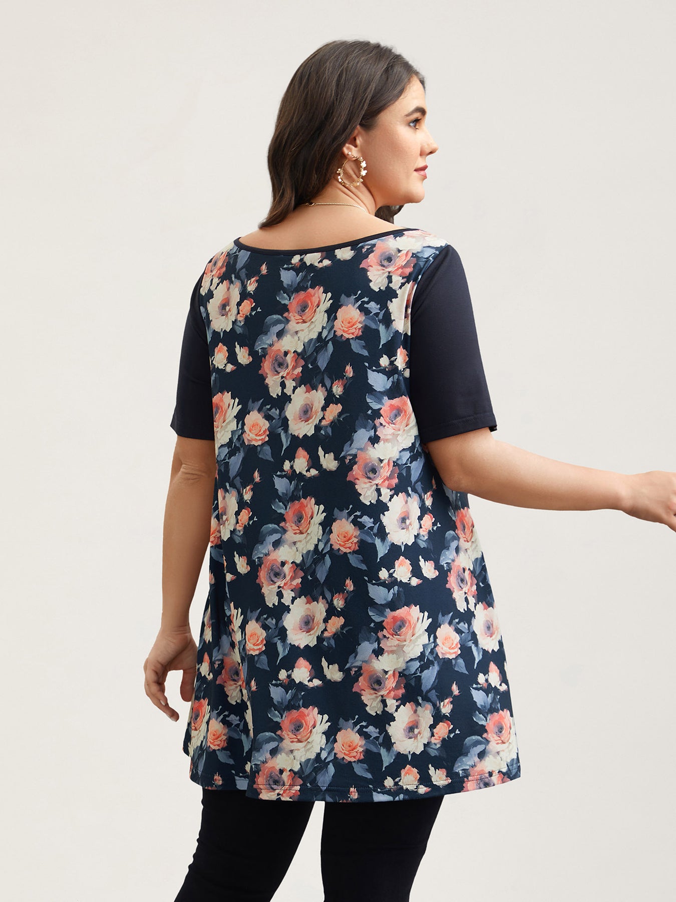 Round Neck Floral Print Patchwork Half Sleeve T-Shirt