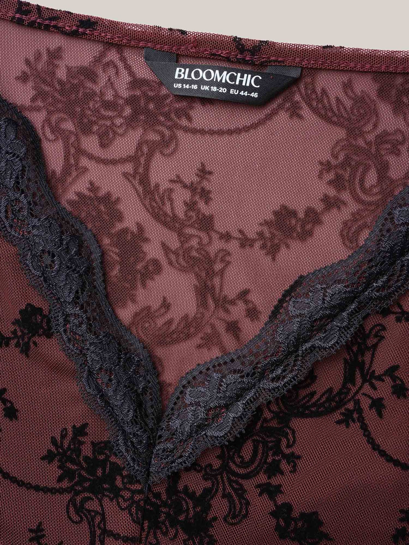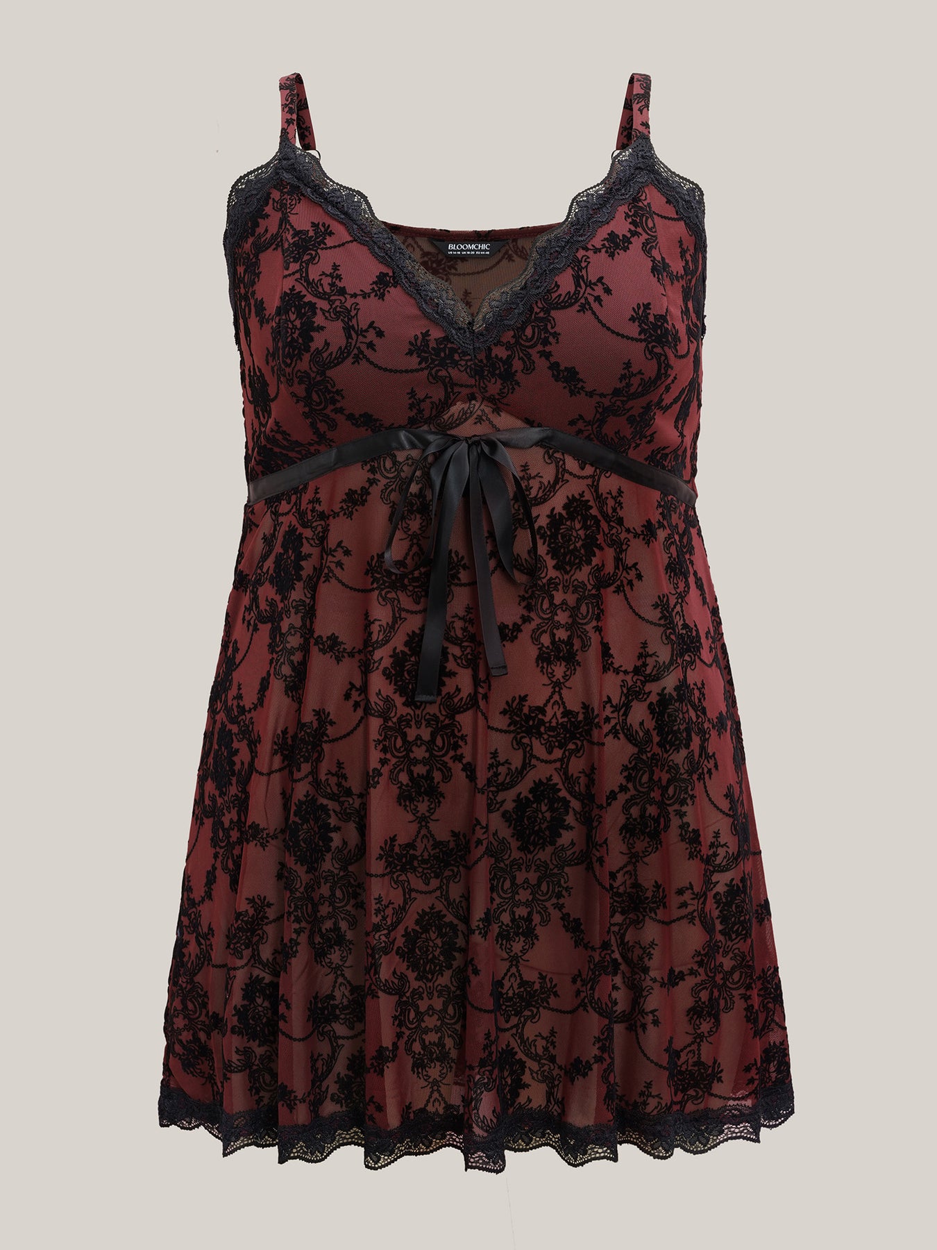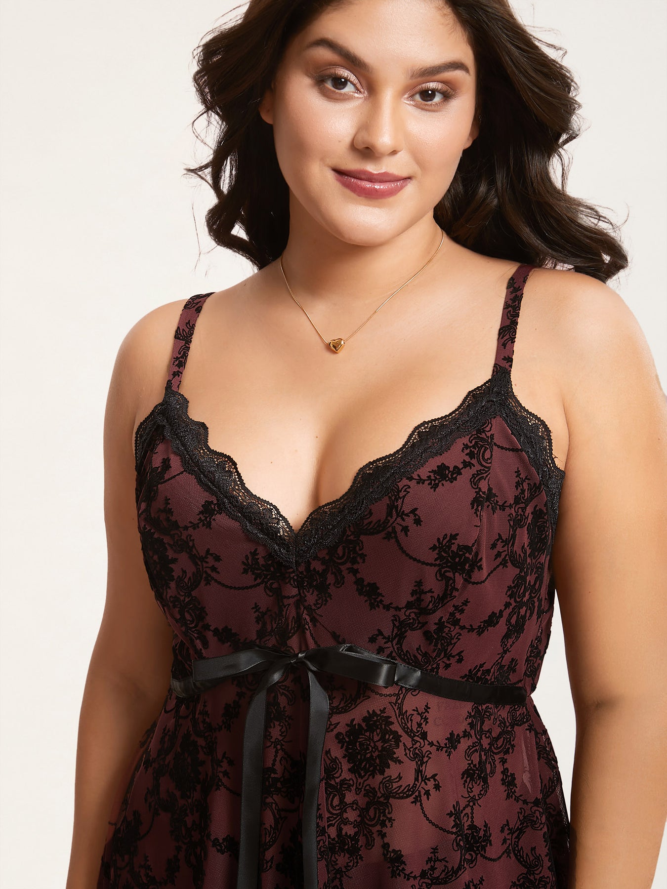 Sheer Floral Lace Patchwork Tie Sleep Dress