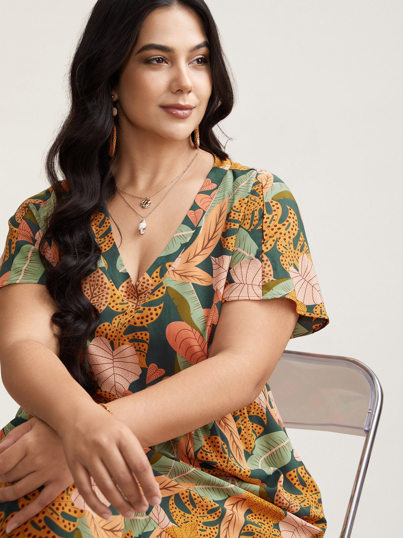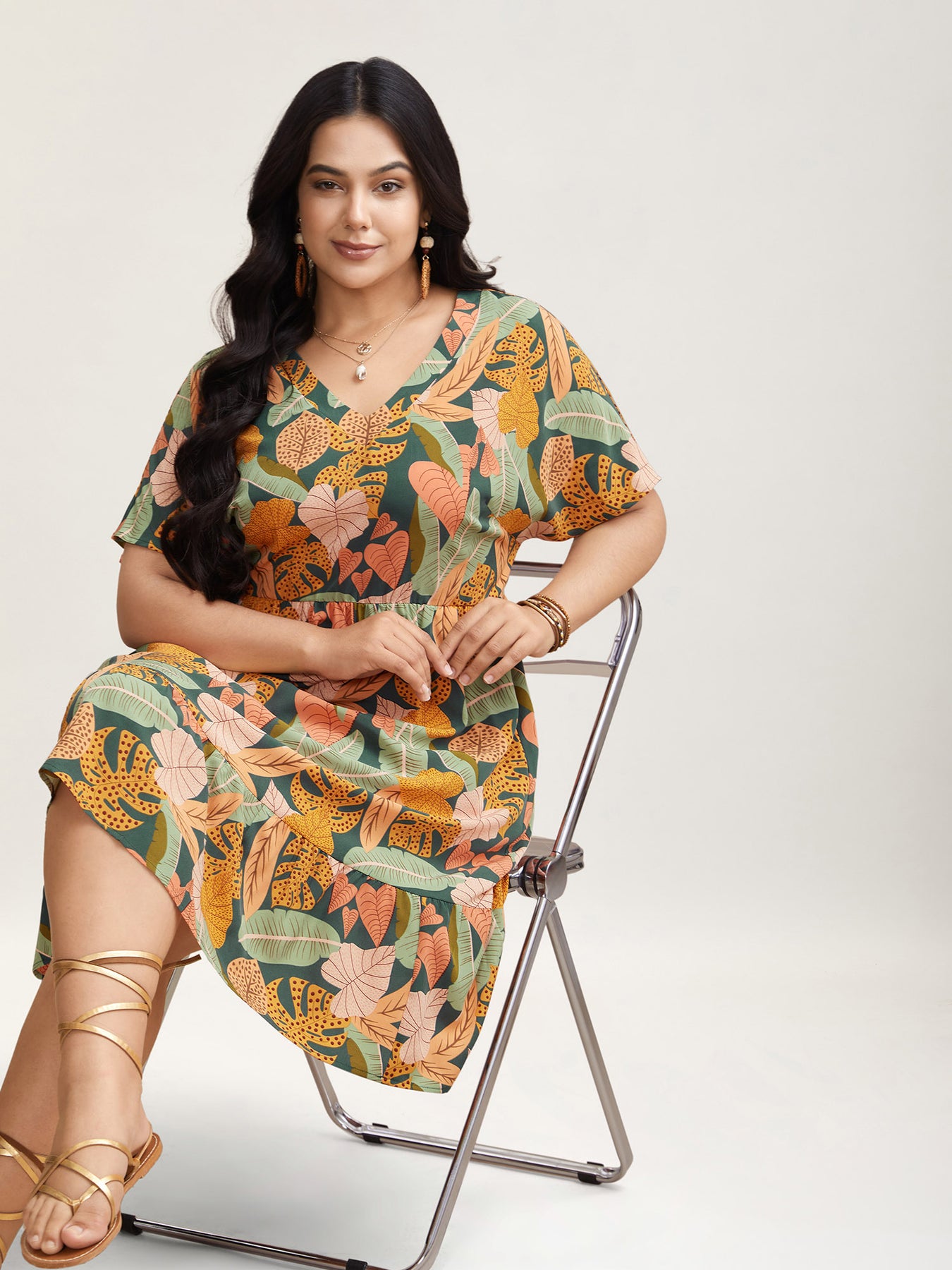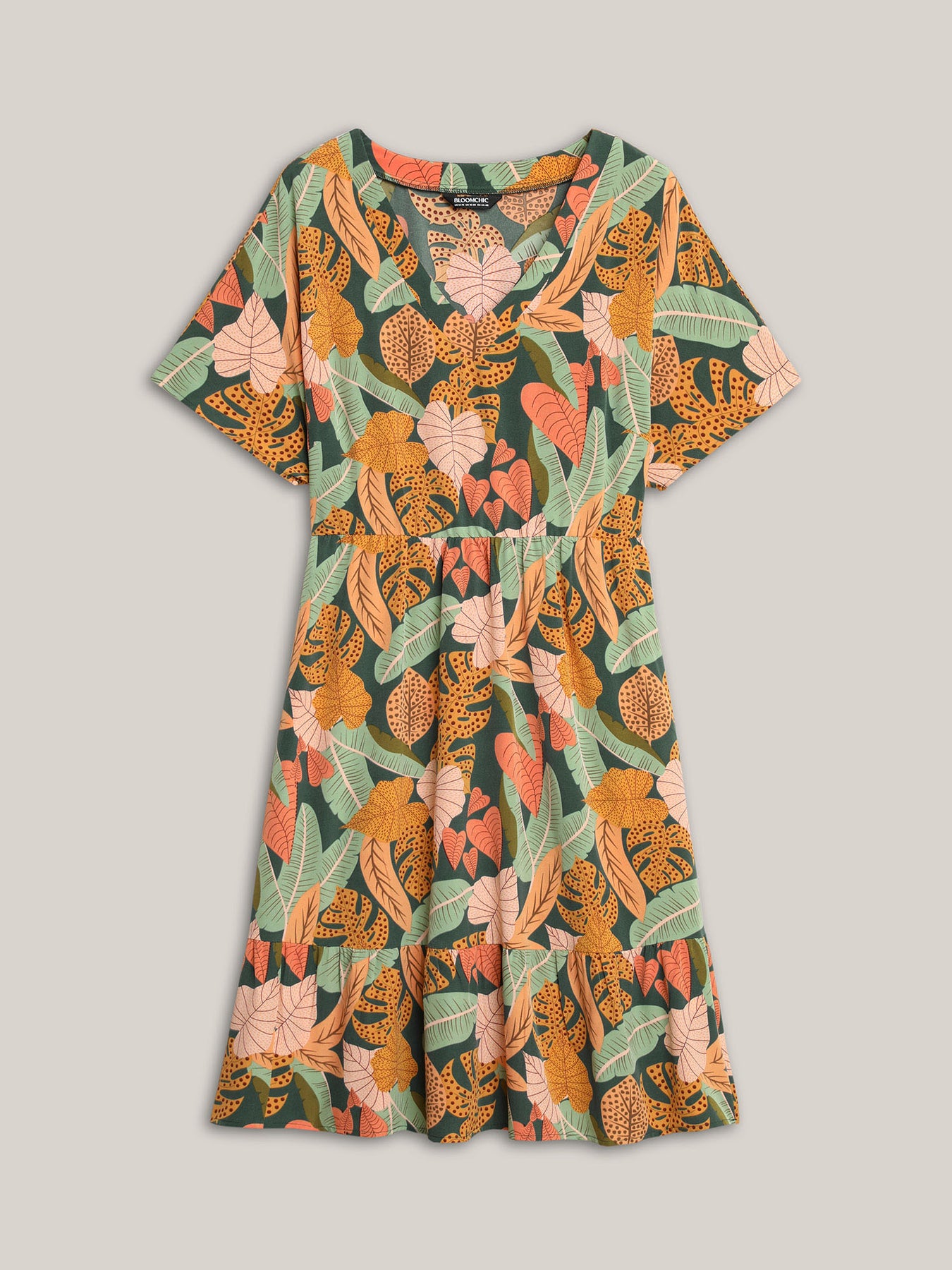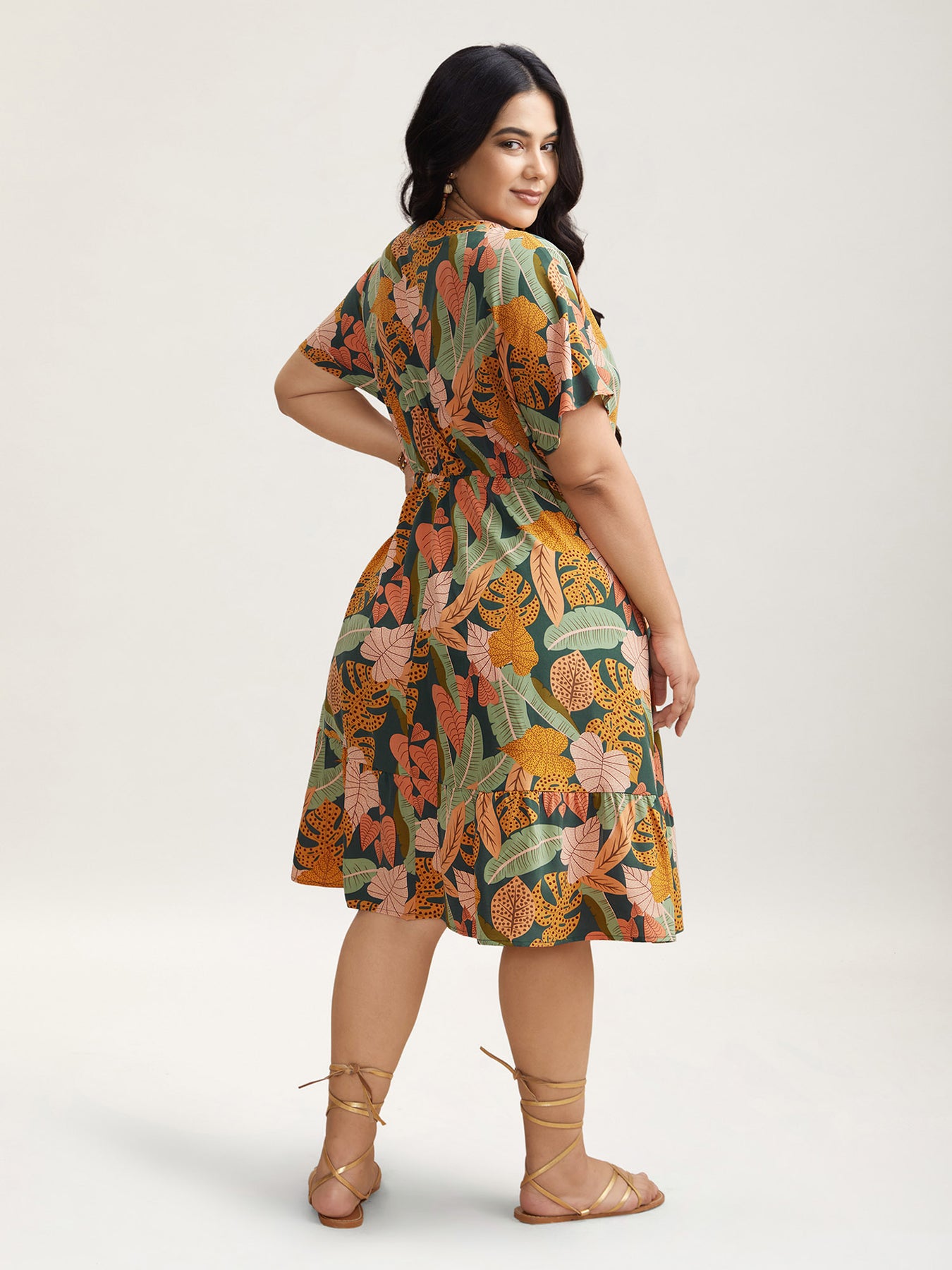 Tropical Flowers Tiered Pockets Midi Dress
